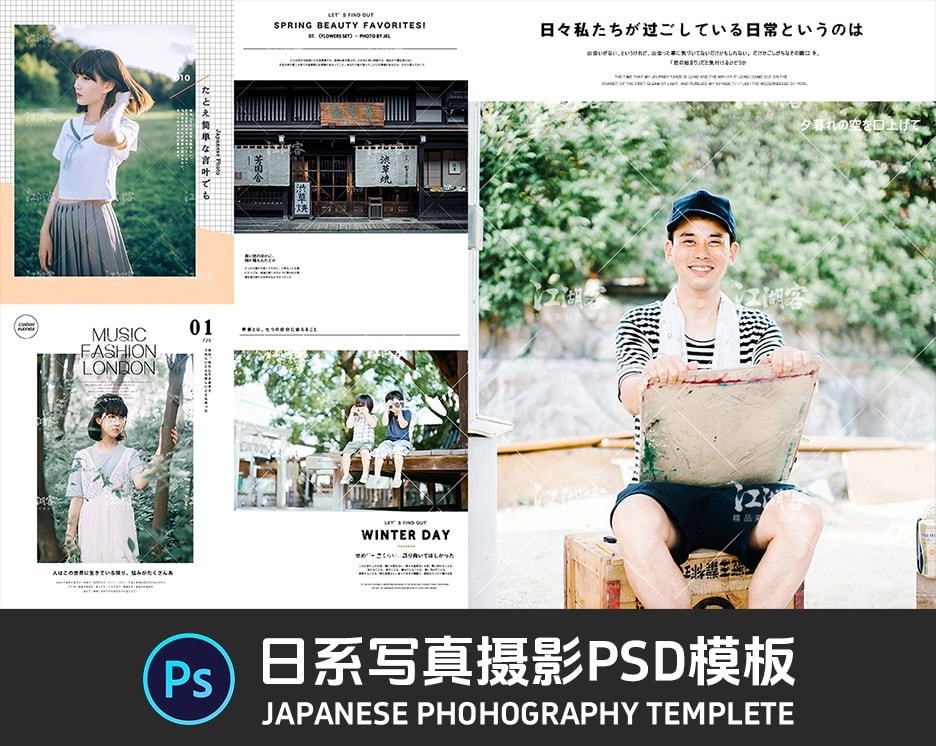 红森林 » 【PSD模板】日系清新唯美文艺摄影后期制作相册文字体排版PS设计素材