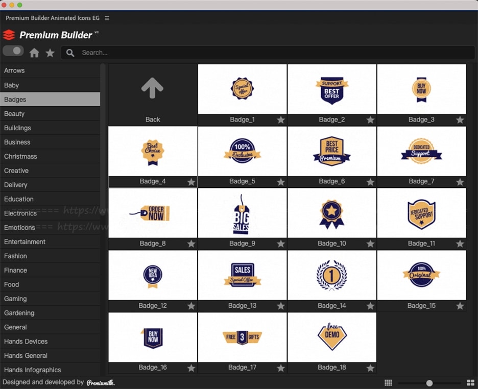 红森林 » 【PR脚本】1000个创意时尚社交媒体生活网络商品建筑体育交通天气食品MG图标动画 PremiumBuilder Animated Icons