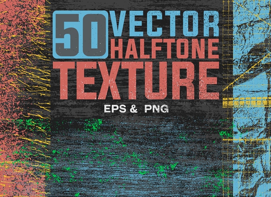 关于产品:50 Vector Halftone Texture,50P矢量半色调与背景纹理包,可让您的照片具有逼真的旧,脏,灰尘和划痕效果。以EPS和PNG格式提供。