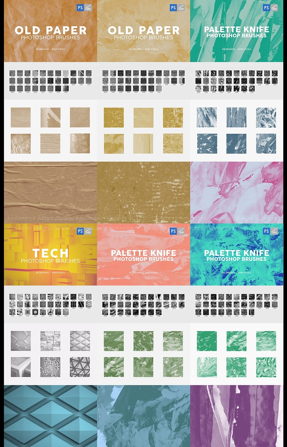 红森林 » 【PS笔刷】3000组超豪华自定义实用PS纹理笔刷合集 3000 Photoshop Stamp Brushes Bundles