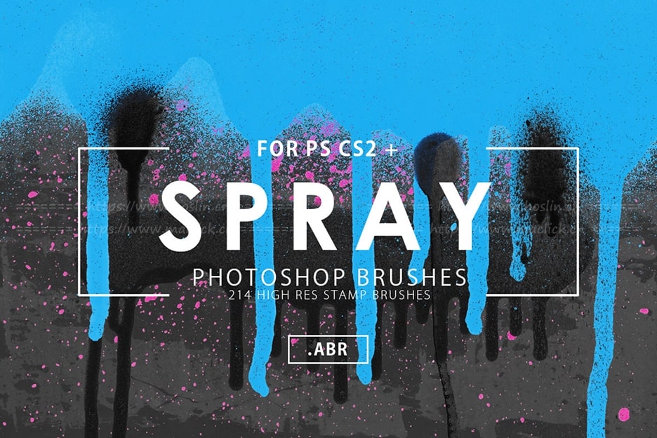 214支用于CS2-CS3- CS3-CS4-CS5-CS6-CC(所有版本)的不同喷涂效果的Photoshop印章刷,请注意:这些画笔对压力不敏感,因此您无需使用图形输入板即可使用它们。
