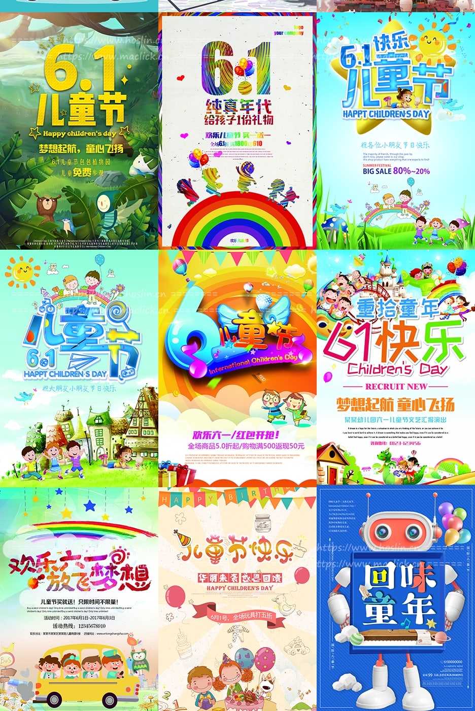 红森林 » 【PSD模板】160+六一儿童节手绘插画海报宣传促销素材PSD模板