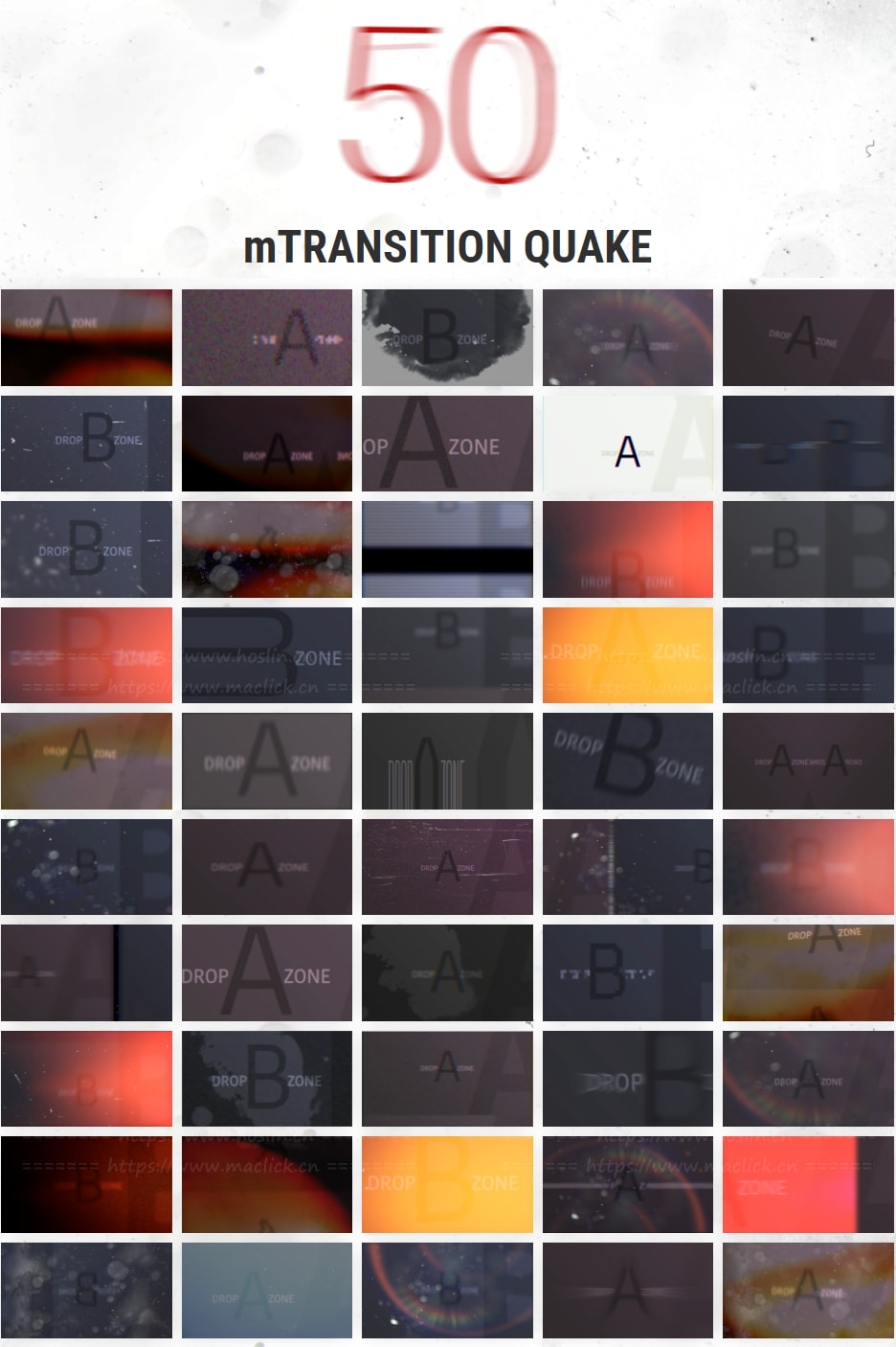 红森林 » 【FCPX插件】50种震撼史诗电影大片抖动过渡转场动画 motionVFX – mTransition Quake 汉化版
