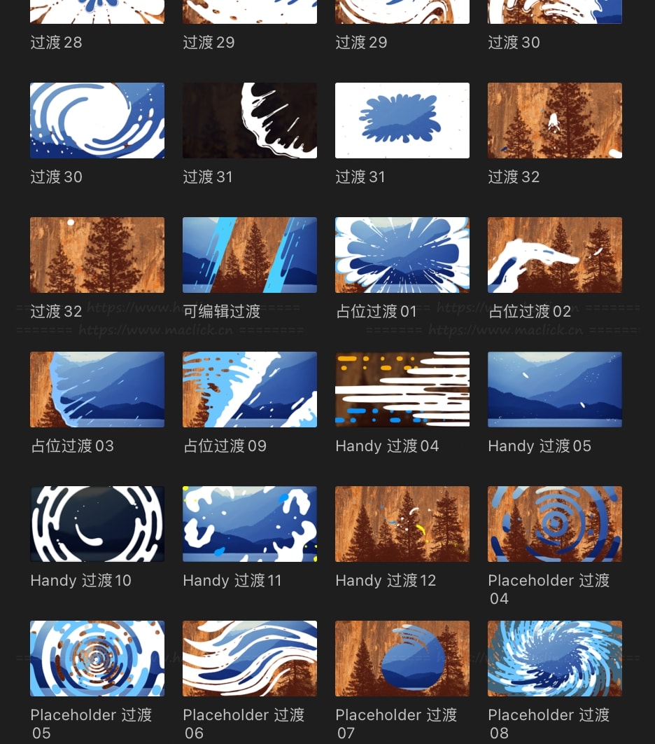 - Transitions 108个图形遮罩转场
