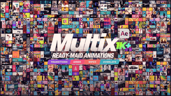 红森林 » 【AE脚本/模板】1000种多画面网格组合视频分屏展示过渡转场预设动画 Multix – MultiScreen Elements Pack