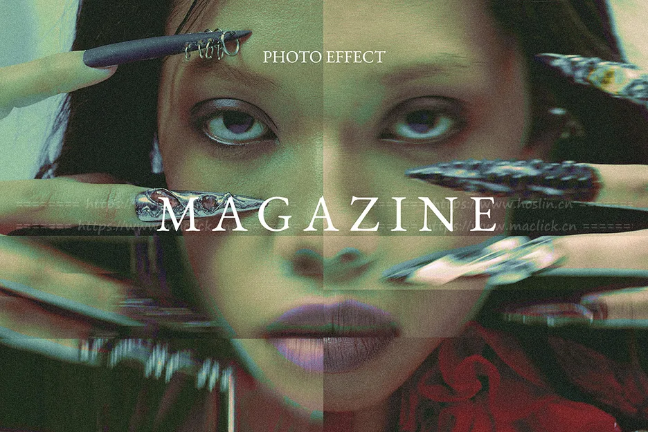 红森林 » 【PSD模板】80年代色块拉伸错位模糊燥点纹理杂志照片复古效果PSD特效模板 80s Fashion Magazine Photo Effect