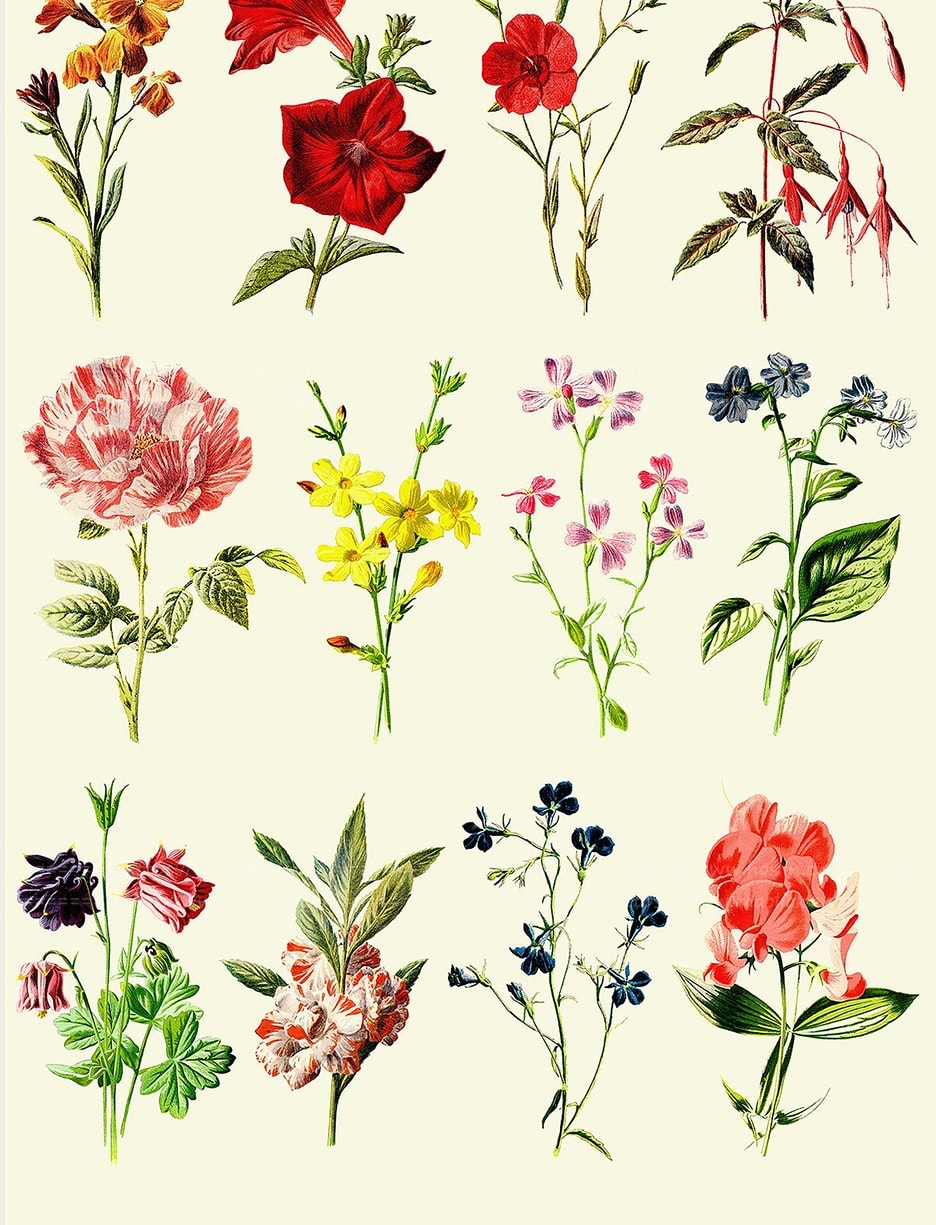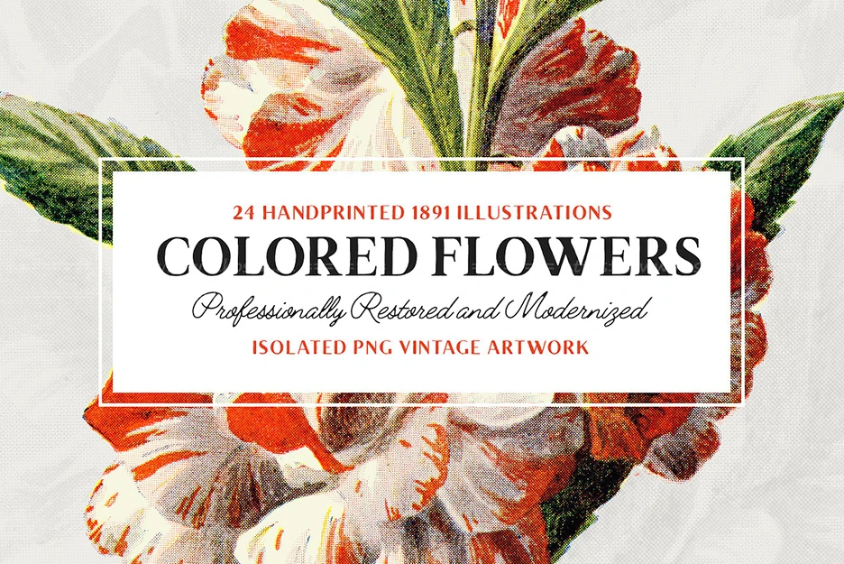 红森林 » 【PNG素材】24副精美植物花卉高分辨率扫描古文献插图PNG图片素材 24 Colored Flower Illustrations