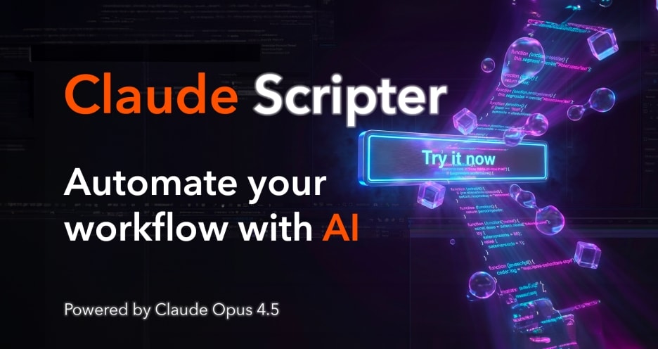 Claude Scripter 是为 After Effects 设计的 AI 脚本自动化助手,它将 Anthropic Claude 的自然语言智能直接带入AE,让你不必编写 ExtendScript(JSX)代码就能实现复杂操作。只要用自然语言描述任务,比如批量重命名图层、偏移关键帧、分布对齐、清理工程、应用表达式甚至创建简单动画,Claude Scripter 就会即时生成并本地执行脚本,大幅减少重复性手动操作,提升工作效率。它还内置脚本库,你可以保存和复用常用自动化命令,构建自己的工作流模板。***注意:脚本需要使用你自己的 Anthropic API Key 来运行 AI 生成功能。