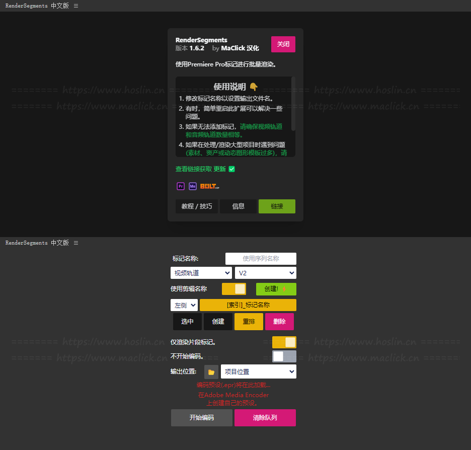 红森林 » 【PR脚本】时间线标记分段批量渲染导出工具 RenderSegments v1.6.2 汉化版 +使用教程