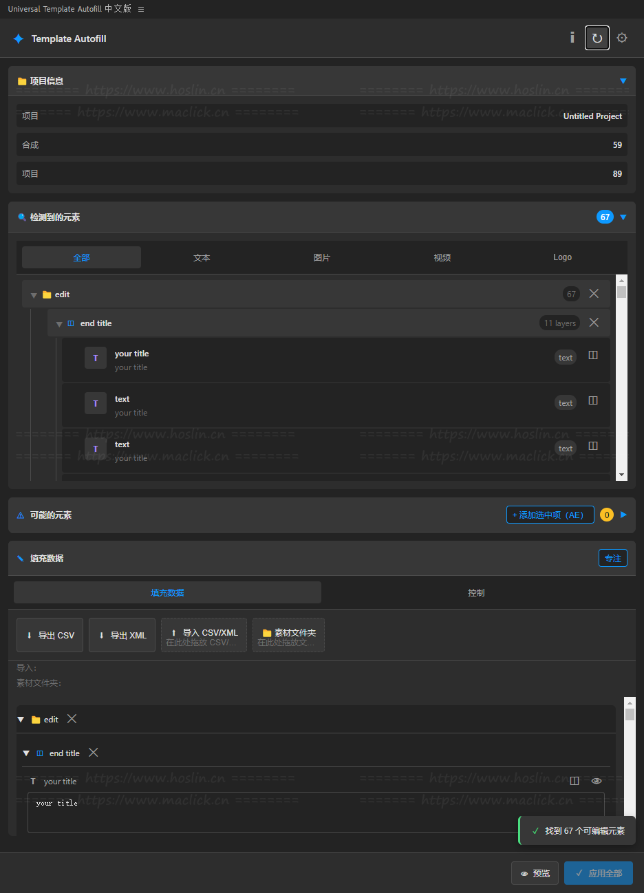 红森林 » 【AE脚本】AE模板可编辑占位元素自动填充扩展工具 Universal Template AutoFill v1.0.0 汉化版 +使用教程