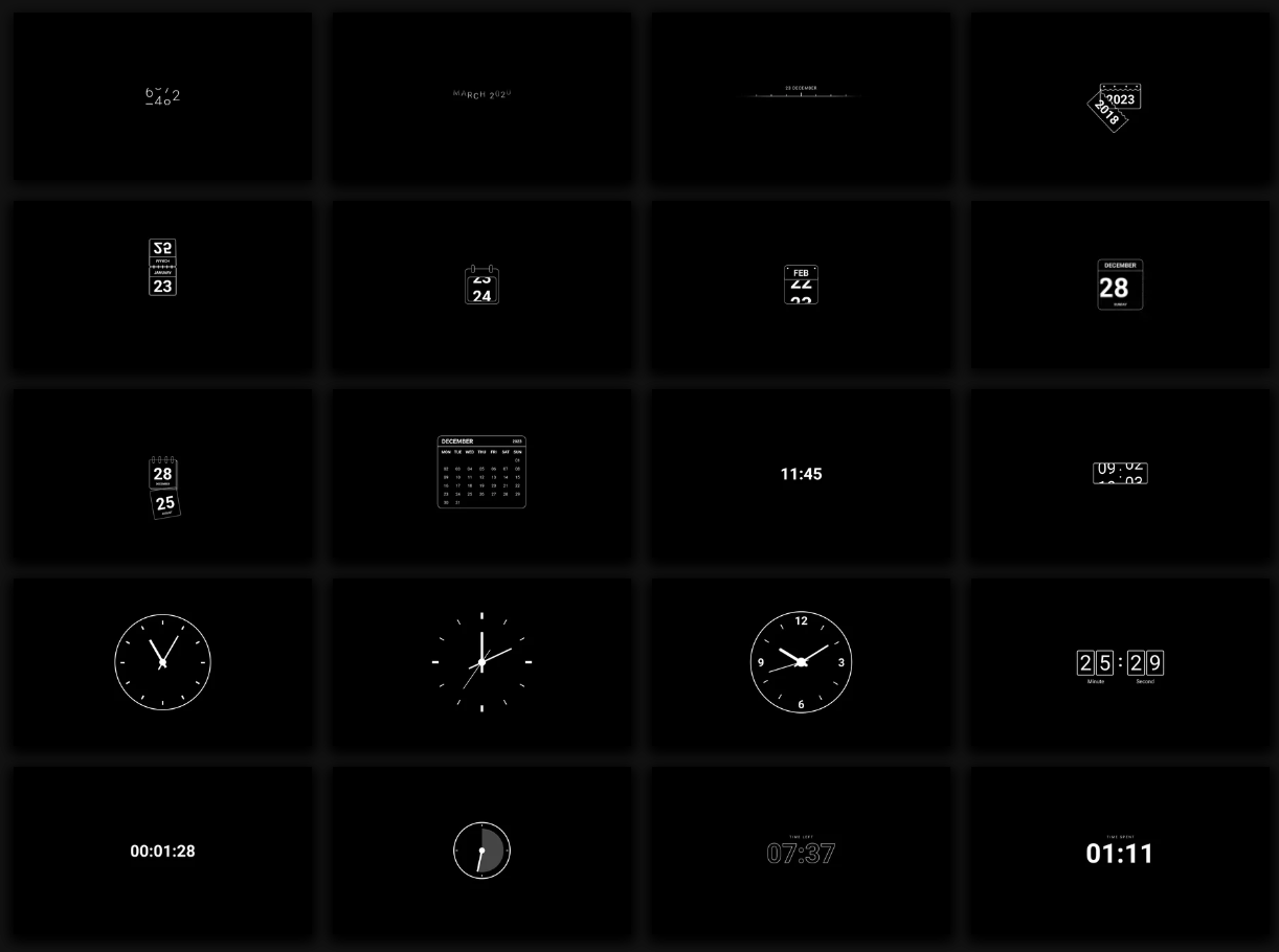 红森林 » 【达芬奇插件】20组独特数字时钟日历日期简洁简洁动画 Time & Date Pack 汉化版