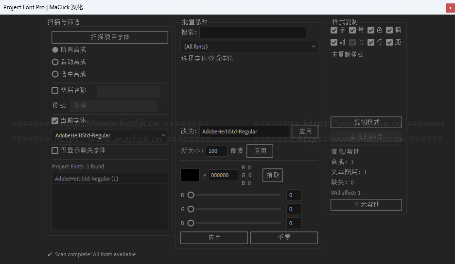 红森林 » 【AE脚本】项目合成字体快速查找批量替换工具 Project Font Pro v1.4 汉化版