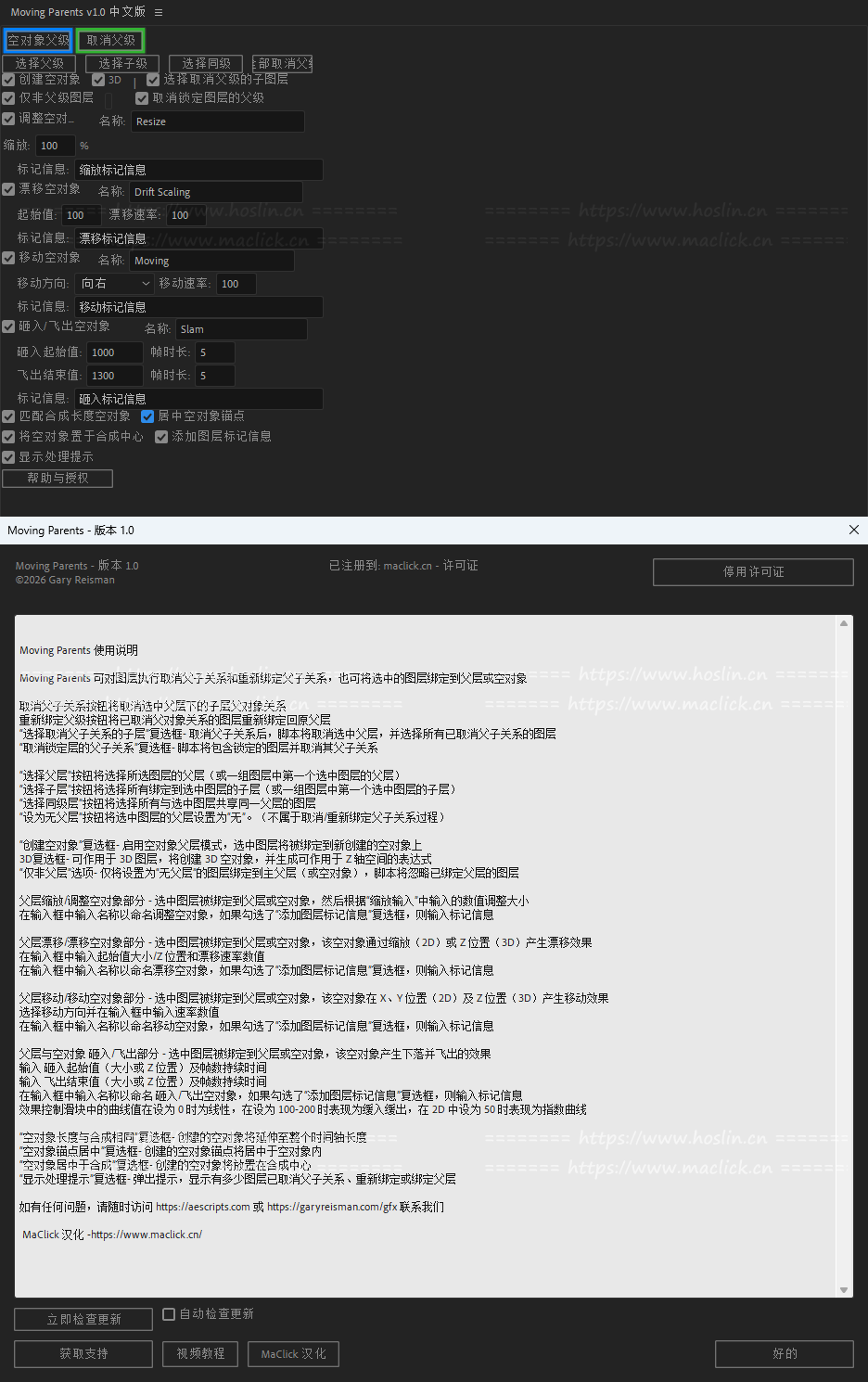 红森林 » 【AE脚本】图层父子级关系绑定管理工具 Moving Parents v1.0 汉化版 +使用教程