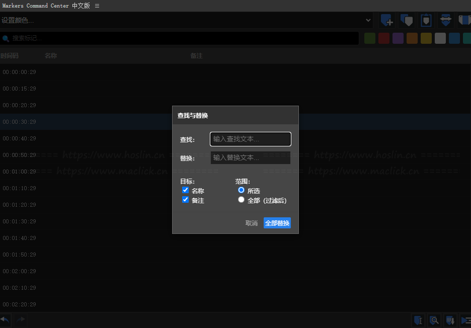 Markers Command Center 支持直接双击进行即时编辑,并具备强大的批量操作能力,如统一修改颜色、批量设置时长或批量重命名等。同时可自动生成标记(如按时间间隔或剪辑点生成),并支持精确偏移与跨序列复制粘贴,保持时间一致性。此外,它还提供查找替换、元数据管理及导出功能(如 CSV 或 YouTube 章节),让标记不仅用于定位,还能参与完整的后期流程管理。