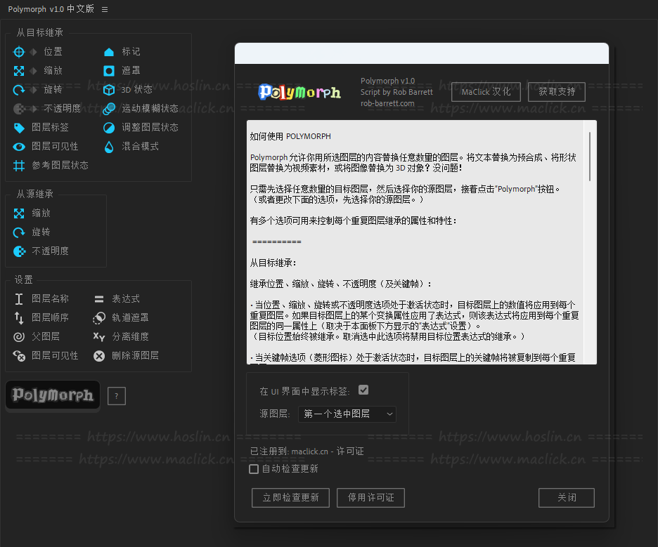 红森林 » 【AE脚本】图层快速绑定替换自动批量处理工具 Polymorph v1.0 汉化版