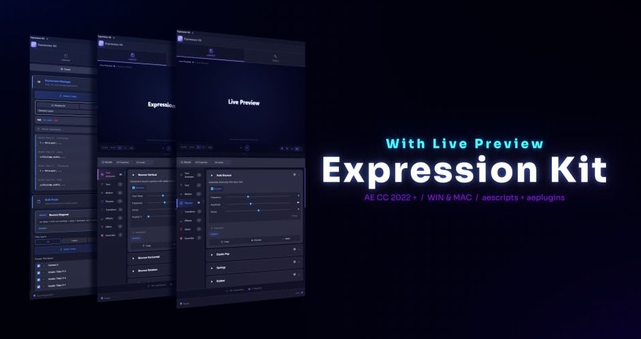 Expression Kit 可视化浏览与实时预览机制既提升了表达式的可用性,也显著加快动效制作流程,特别适合不熟悉脚本但需要高效实现复杂动画逻辑的设计师使用。