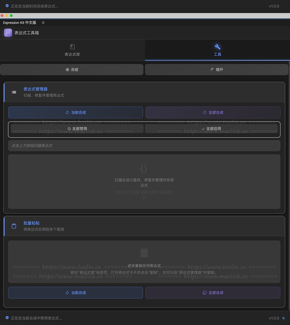 版本历史:v1.0.0 -初始发行。140 个表达式,涵盖 7 个类别。实时预览,并可实时控制参数。表达式工具:交错、冻结、表达式管理器、批量粘贴。