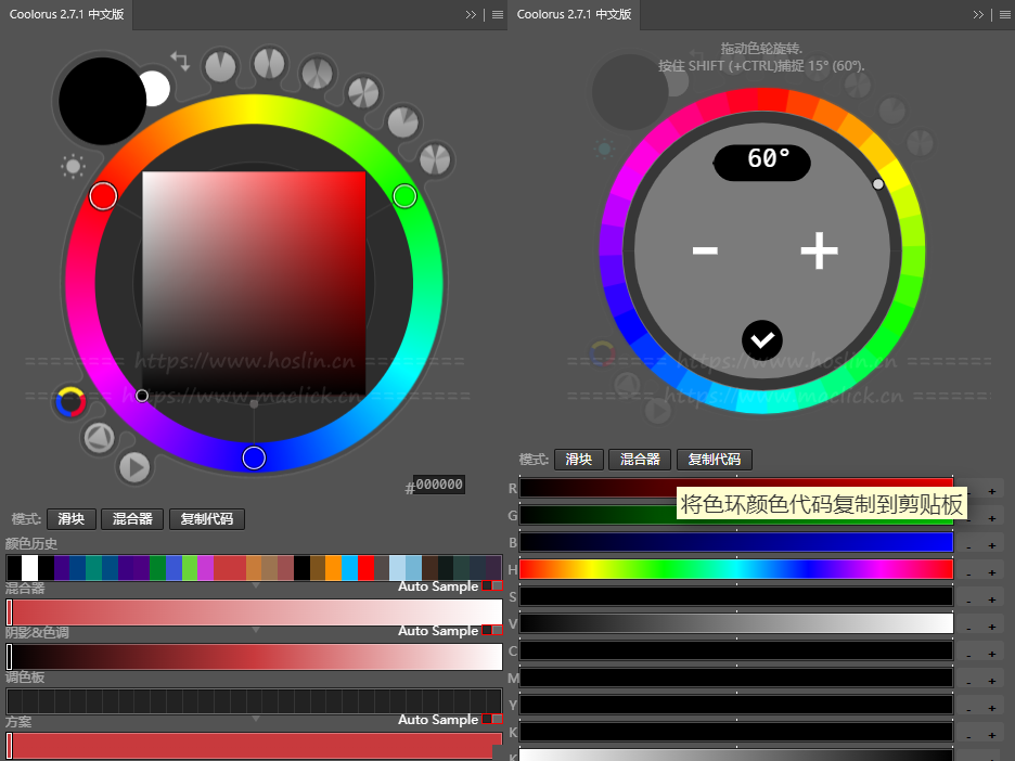红森林 » 【PS插件】专业配色神器PS色轮色环调色插件面板 Coolorus v2.7.1 汉化版