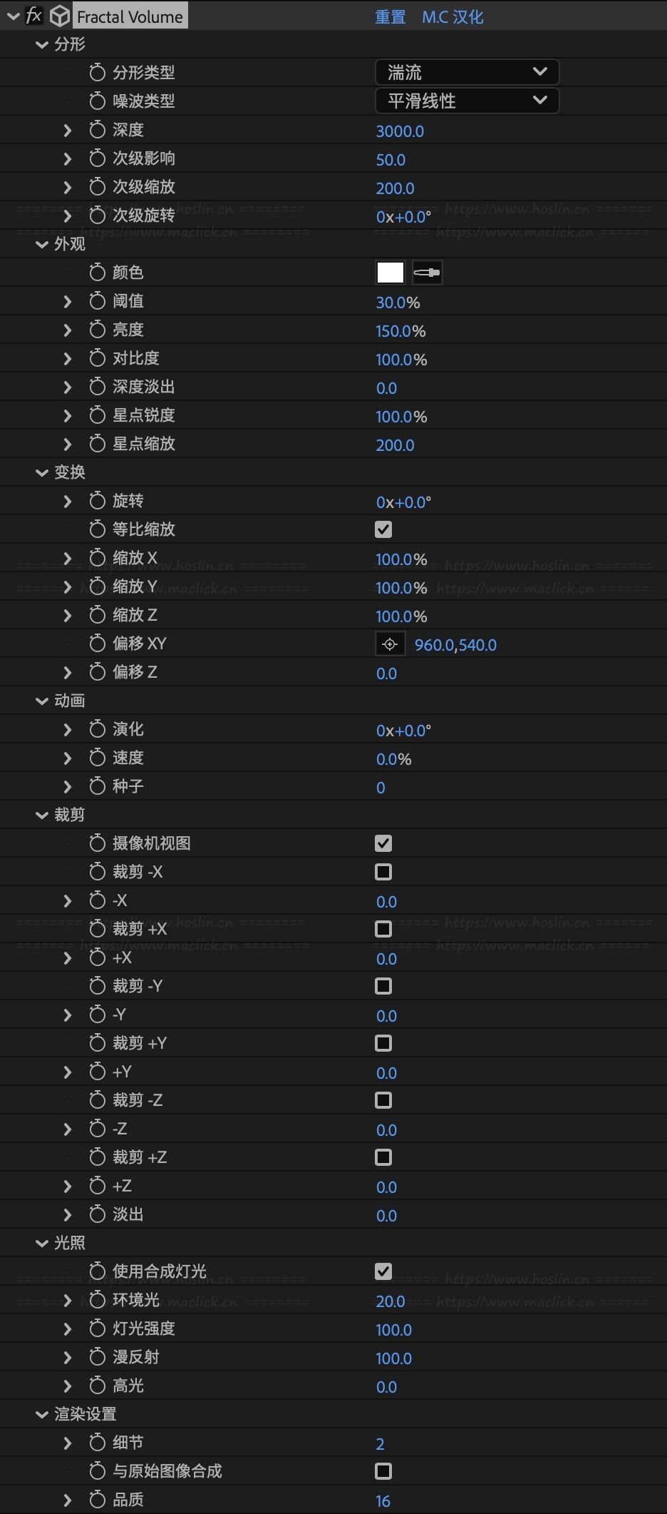 红森林 » 【AE插件】三维空间分形噪波星空体积云效果生成插件 Fractal Volume v1.0.0 Win/Mac汉化版 +使用教程