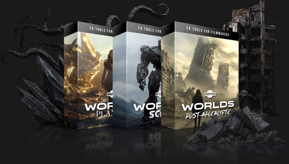 探索我们的 3 个全新世界主题包:末日之后、科幻和行星。WORLDS – Set Extension Packs (Vol. 1 + 2 + 3) 是一款数字绘景工具包,旨在将任何实景拍摄场景转化为电影宇宙。我们结合了数字图形元素和人工智能技术,创建了超过 3500 个图像素材,帮助您在后期制作中无缝扩展场景。无论您是在制作电影、广告还是音乐视频,您都能在 83 个独特的类别中找到无限的创意可能。