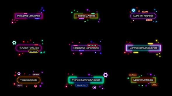 Neon Cyber HUD Titles & Lower Thirds 是一套以赛博界面设计风格的标题与字幕动画,模板大量运用霓虹描边、HUD扫描线、数据化图形等元素,通过层级分明的动画节奏,构建出类似未来操作系统界面的视觉体验,整体风格偏冷色、数字化与功能导向。包含多组标题与下三分之一字幕版式,适用于人物标注、参数展示及内容分区说明等场景。结构模块化,文本与颜色均可快速自定义,适配不同项目风格。
