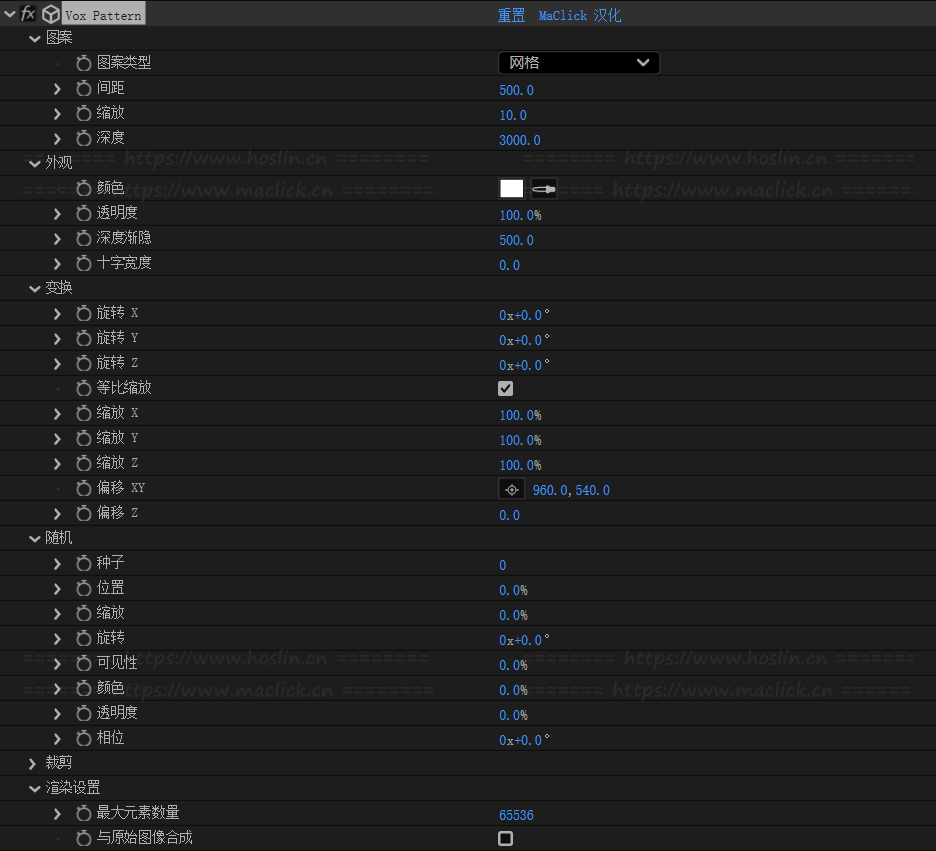 红森林 » 【AE插件】三维空间几何图案阵列图形动画 VoxPattern v1.0 汉化版 +使用教程
