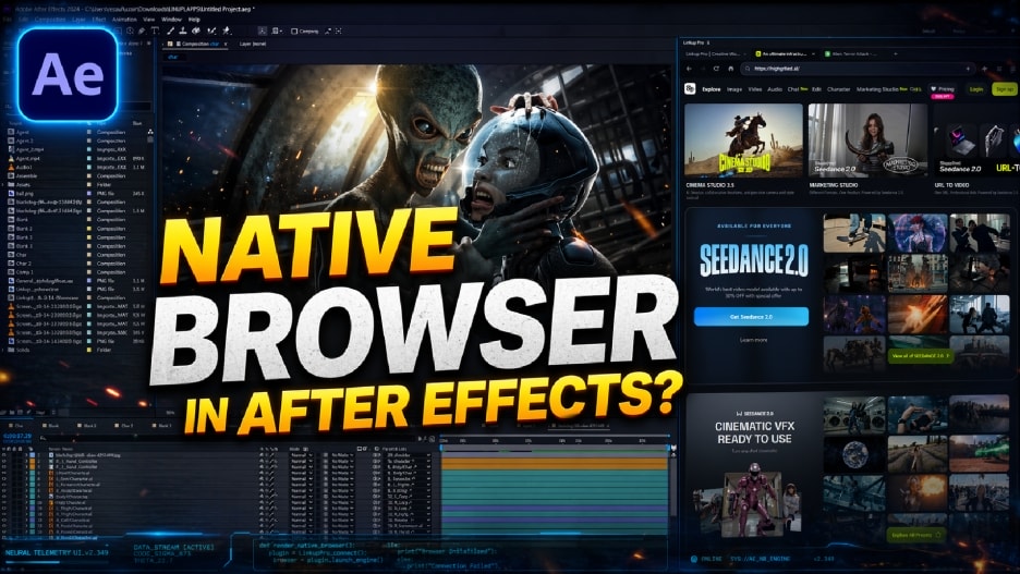 Linkup Pro 将完整的原生浏览器、AI 助手和 AI 代理直接集成到 After Effects 中。使用真正的浏览器引擎(Windows 系统使用 Chromium,Mac 系统使用 Safari)浏览整个网络。向任何 AI 发出指令,保存您的提示,然后让代理直接在您的项目中执行任务。无需任何变通方法,也没有任何限制。Linkup经过彻底重构,现在已成为一个原生插件。