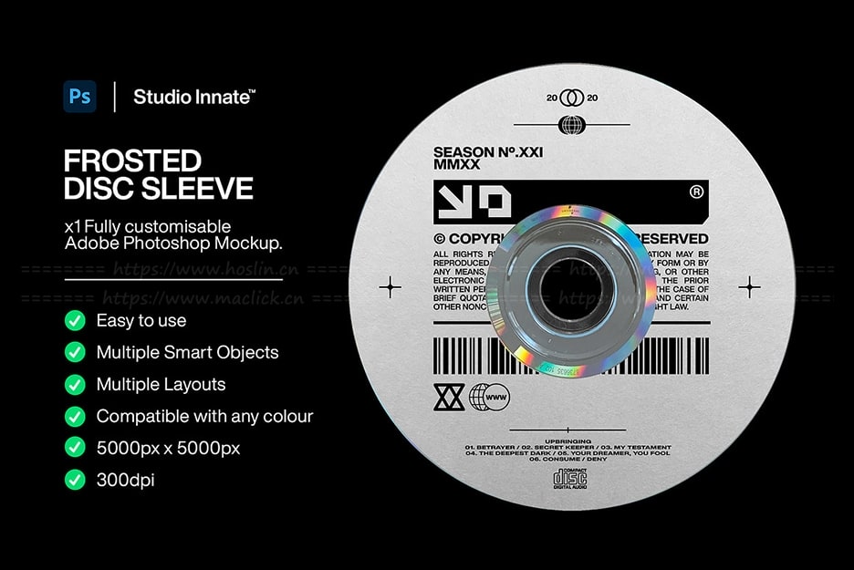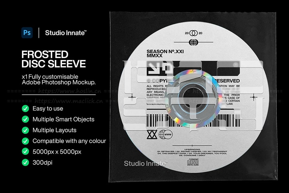 红森林 » 【PS样机】复古音乐专辑CD光盘塑膜包装封面设计展示贴图样机 Studio Innate – Frosted Disc Sleeve