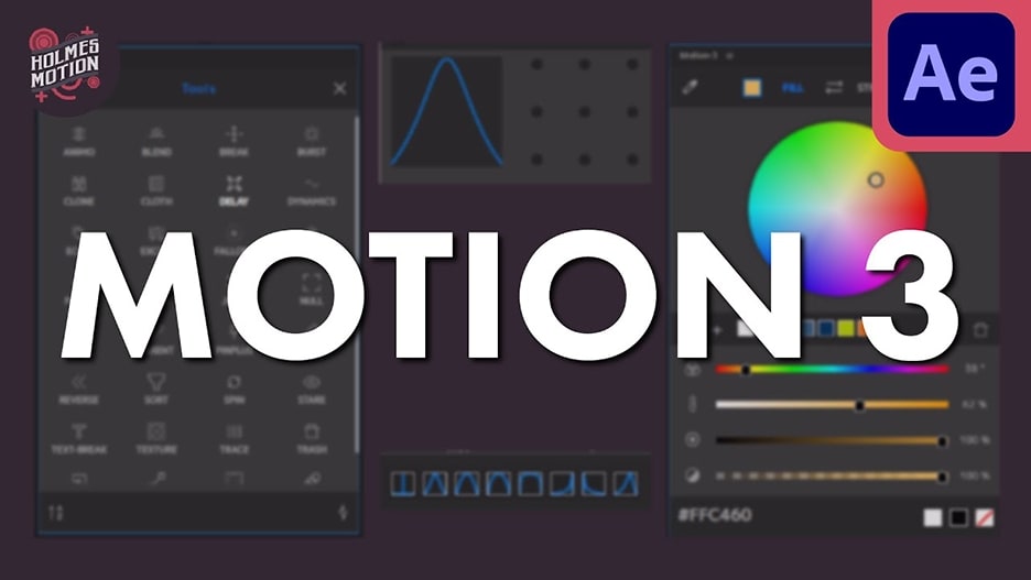 脚本Motion V3,这是一款由 Mt. Mograph出品强大的AE脚本,Motion V3脚本拥有45多个强大的工具和数百个控件:曲线调节、颜色控制、中心点对齐、滑块控制、制作MG小动画的多种快捷操作等。被世界各地的专业人士用于在Adobe After Effects中创建高端MG运动图形。