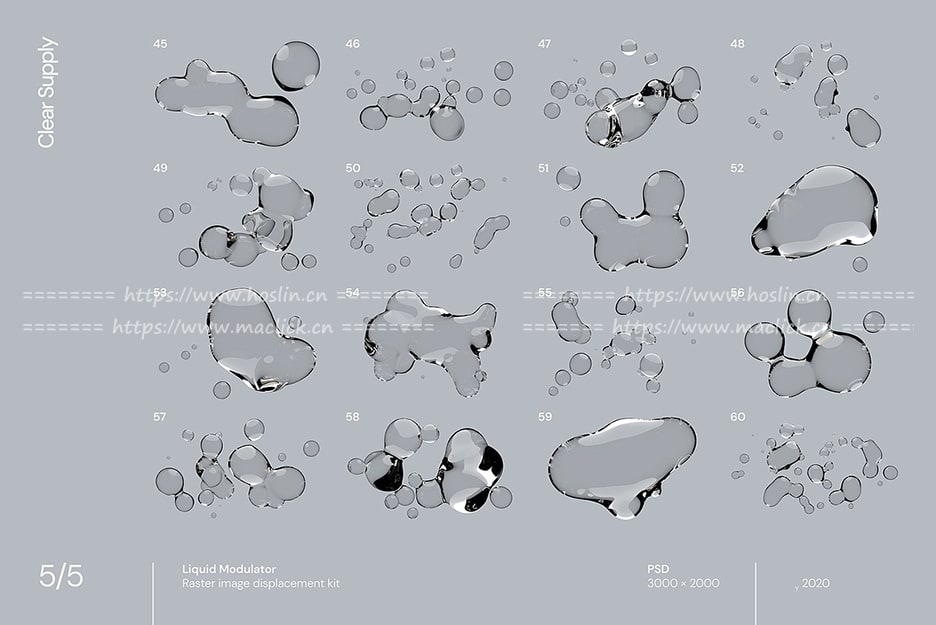 红森林 » 【图片素材】60款透明液态气泡素材PSD分层展示样机液体肥皂气泡背景PS设计素材 Liquid Modulator
