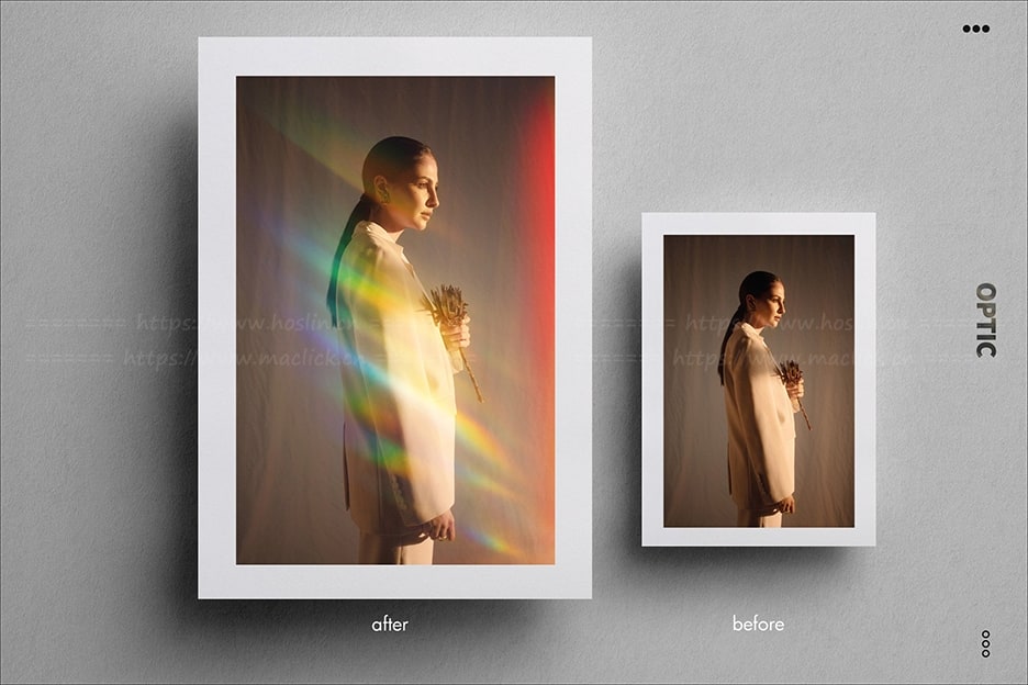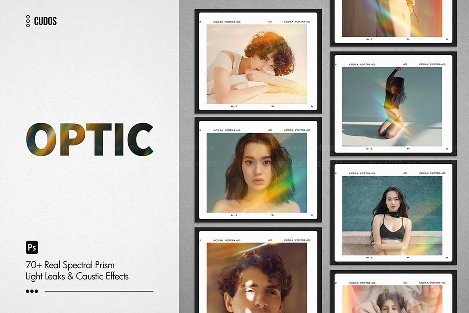 关于产品:OPTIC | Prism & Rainbow Light Leaks 超过 70 种真实光谱棱镜漏光和焦散效果 – Photoshop 叠加