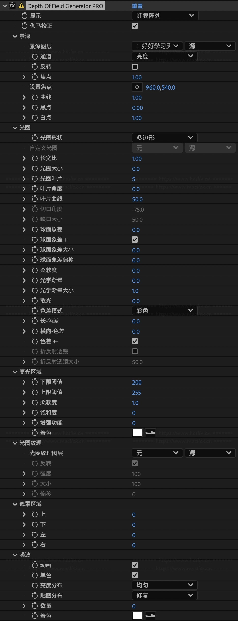 插件使用位置:【Effects/效果】- Richard Rosenman – Deoth Of Field Generatpr PRO
