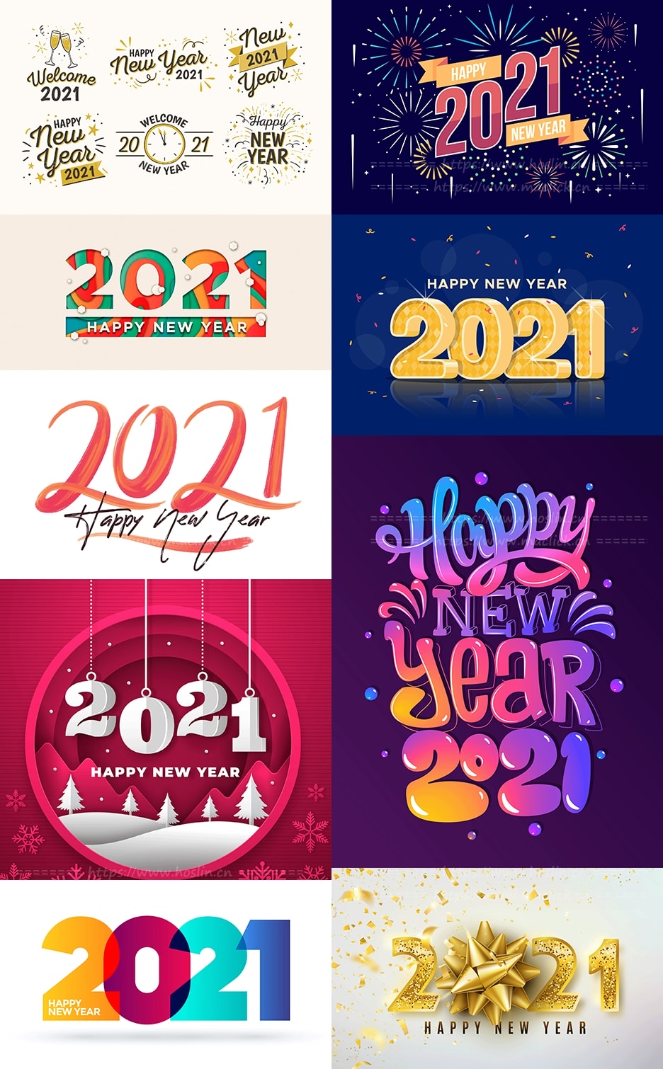 红森林 » 【矢量素材】一组2021新年快乐横幅与数字矢量素材合集