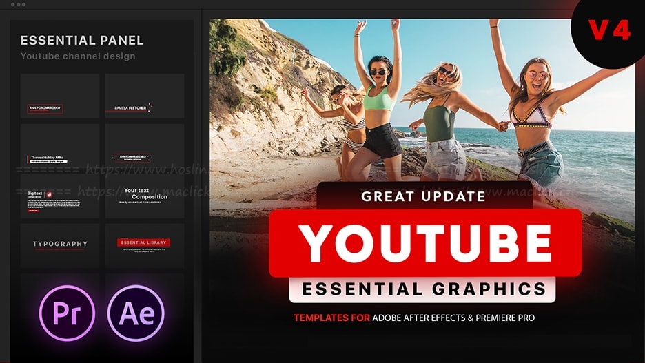 红森林 » 【AE脚本/PR模板】130组时尚网络社交媒体LOGO标题排版包装宣传动画 YTB Essential Library v4