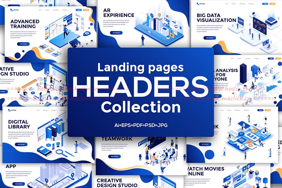 10款时尚现代高端2.5D等轴等距平面设计概念banner着陆页插画海报设计模板,易于编辑和自定义。由于矢量形状和组织良好的图层,因此易于编辑,自定义和调整大小。