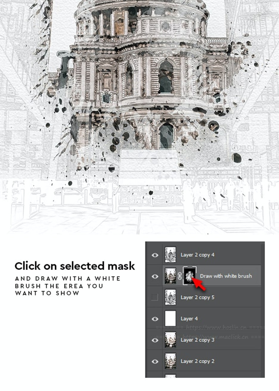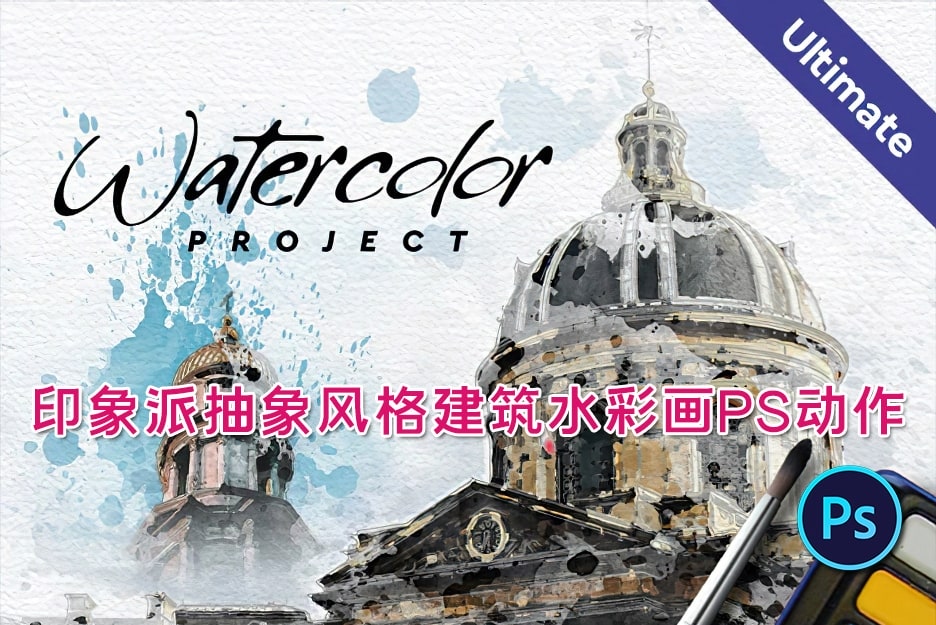 红森林 » 【PS动作】印象派抽象风格建筑水彩画效果PS动作 Watercolor Architecture – Photoshop Action