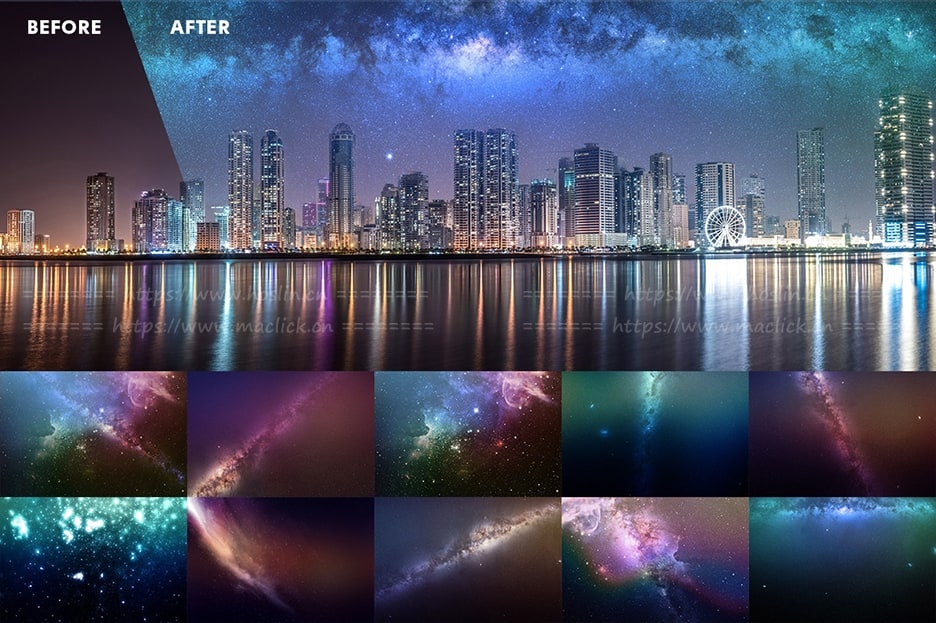 红森林 » 【图片素材】10张高质量夜空星空银河星河叠加图片素材+PS动作 Starry Sky Overlays Pack