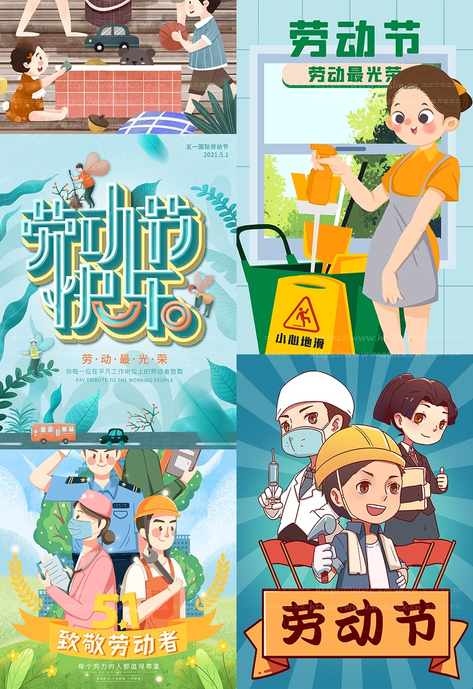 红森林 » 【PSD模板】50款五一国际劳动节小清新手绘插画海报PSD模板