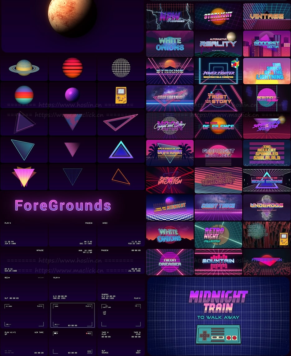 红森林 » 【AE模板】80年代复古文字标题背景图形元素场景动画 Retro Wave Pack