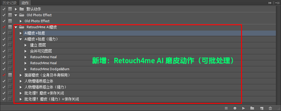 - 新增:PS动作 – Retouch4me AI磨皮.atn