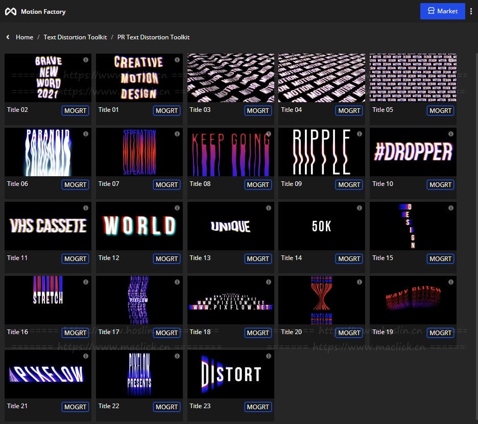 一款功能强大的产品适用于After Effects 和 Premiere Pro 的文本失真工具包,可帮助您为任何项目创建时尚的抽象排版。这些液体变形效果正在接管社交媒体,现在您可以在几分钟内创建自己的效果。您可以将这些文本失真效果用于社交媒体帖子、视频网站、视频音乐标题、广告视频、GIF、电子邮件营销等等,无论您替换什么占位符,您总能获得漂亮的效果。