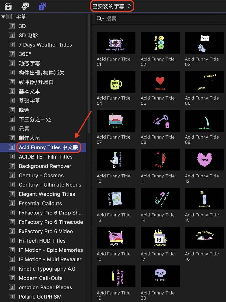 红森林 » 【FCPX插件】20款时尚卡通创意趣味酸性文字标题动画 Acid Funny Titles 中文版