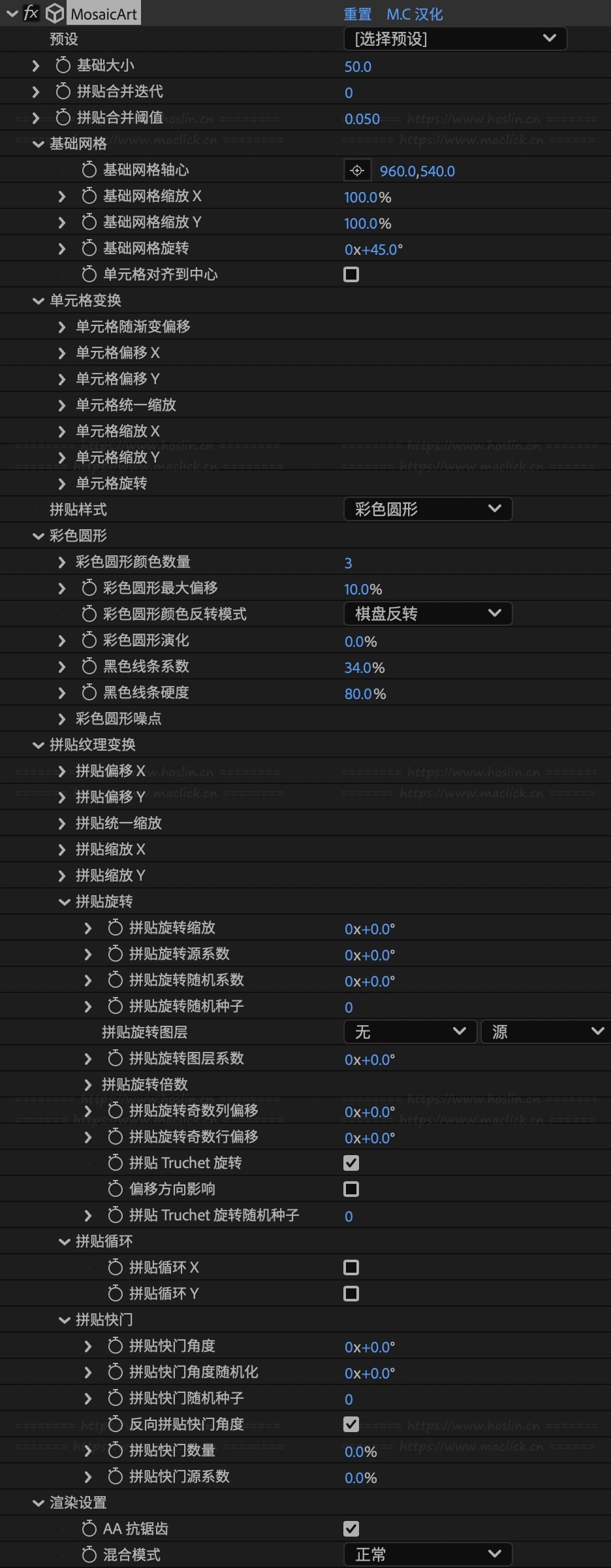红森林 » 【AE插件】高级马赛克动态平铺视觉特效 MosaicArt v1.1.3 Win/Mac汉化版 +使用教程